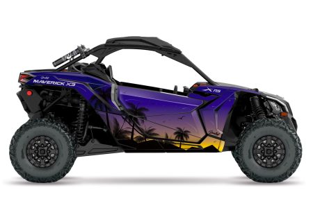 The Can-Am Maverick X3 side by side UTV Basic graphic design embraces a sleek, minimalist design, merging form and function effortlessly. Its aesthetic is marked by clean lines and bold simplicity, a nod to the vehicle’s rugged capabilities. The primary color palette revolves around a sophisticated combination of black and vibrant accents, ensuring a striking presence on any terrain.