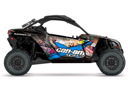 The Can-Am Maverick X3 That’s It graphic kit showcases an impressive blend of bright colors, enhanced by subtle scratch textures, creating a visually captivating and edgy appearance for the UTV. Its bold and vibrant color combination, coupled with the nuanced textures, adds an extra layer of dynamism and character to the vehicle’s design.
